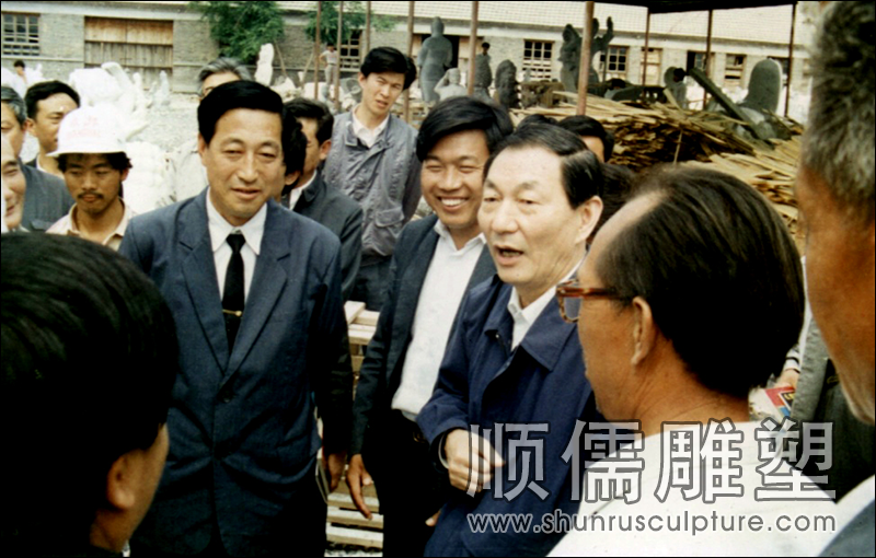 原国务院总理朱镕基于1991年5月来我公司视察,总经理田顺儒(左三)陪同